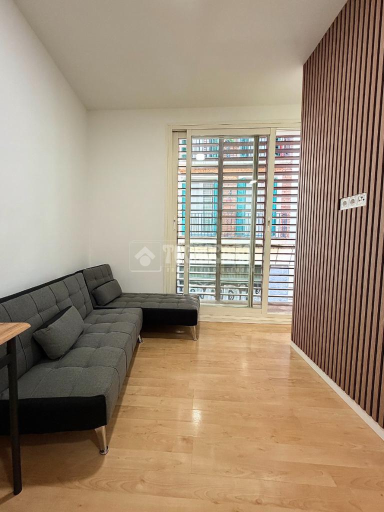 Al ingresar, nos encontramos el amplio salón con balcón-terraza a pared completa, el cual deja entrar una gran cantidad de luz natural que inunda toda la estancia. Así mismo, cuenta con cortinas metálicas que favorecen la privacidad y ventanas dobles de climalit que garantizan el aislamiento acústico y térmico. A su lado, tenemos el dormitorio con canapé doble. Finalmente, tenemos la cocina completamente equipada con todos los electrodomésticos, un espacioso armario ideal para el almacenamiento y el baño completo con pato de ducha.