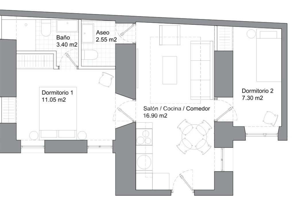 El inmueble ofrece una distribución muy funcional con AMPLIAS VENTANAS EN TODAS LAS ESTANCIAS que brindan la ventilación, el silencio y la quietud de un tranquilo patio interior. Al ingresar, nos recibe un amplio salón, perfecto para disfrutar del confort que cuenta con área de descanso, ventana y almacén. Del lado derecho, tenemos el primer dormitorio con armario y ventana. Por el lado izquierdo encontramos la cocina con ventana, que finaliza con un cuarto de almacén y lavandería. Seguidamente, tenemos un baño completo, también con ventana.